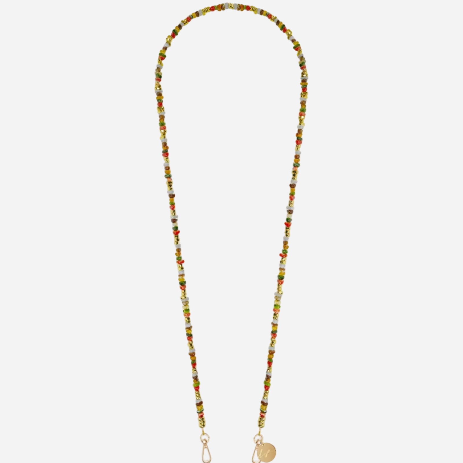 Nuestra cadena para teléfono Liviya encarna la ligereza y la libertad. Sus cuentas irregulares cuentan una historia dulce y única. Se acopla a nuestras fundas para anillos y adaptadores universales, un detalle que llama la atención sin llegar a ser excesivo.