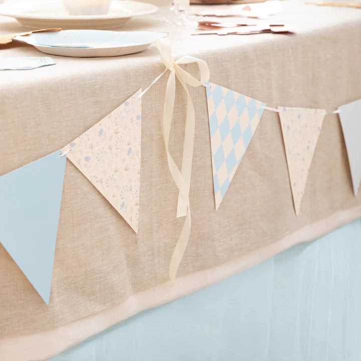 ¡Última tendencia en fiestas de cumpleaños! Dale un toque Chic, original y muy actual a la decoración de tu fiesta, con esta guirnalda en colores azules. Realizada en papel en unos bonitos colores azules y neutros. Perfecta para reutilizar una y otra vez.