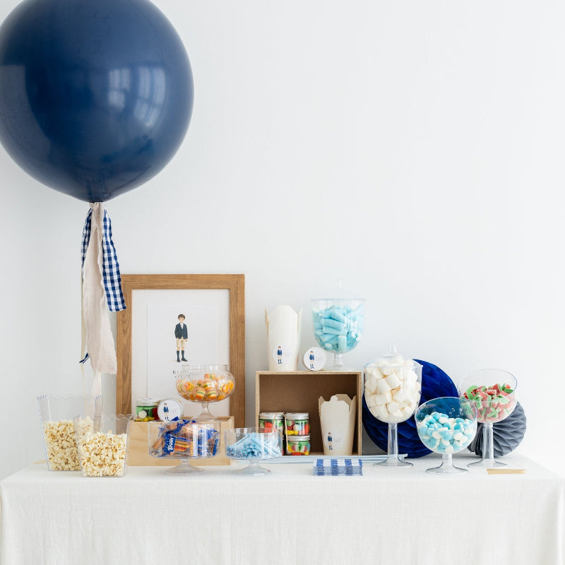 Con este kit personalizado tendrás todo lo que necesitas para montar tú misma una Candy Bar ideal para una Primera Comunión. Sólo necesitarás una mesa y te recomendamos agregar un detalle floral o uno de nuestros globos hinchados en caja Iconic disponibles con envío en toda la península.