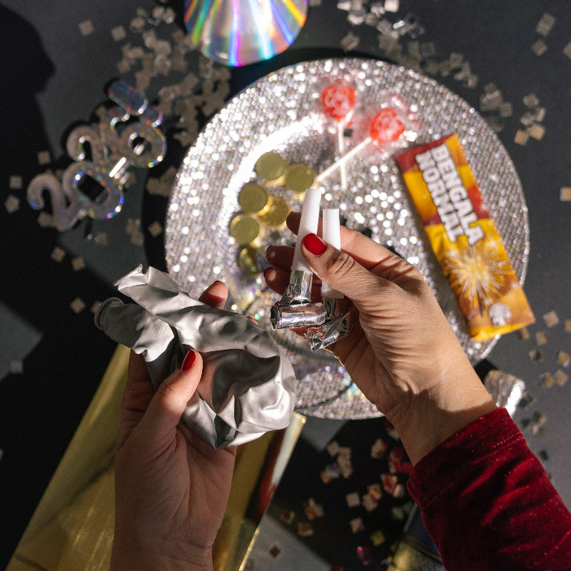 Con este kit de cotillón para dos personas la fiesta de Nochevieja está asegurada. Contiene complementos de disfraz y una selección de detalles para celebrar en tu fiesta de Nochevieja por todo lo alto pero con un toque muy cool.