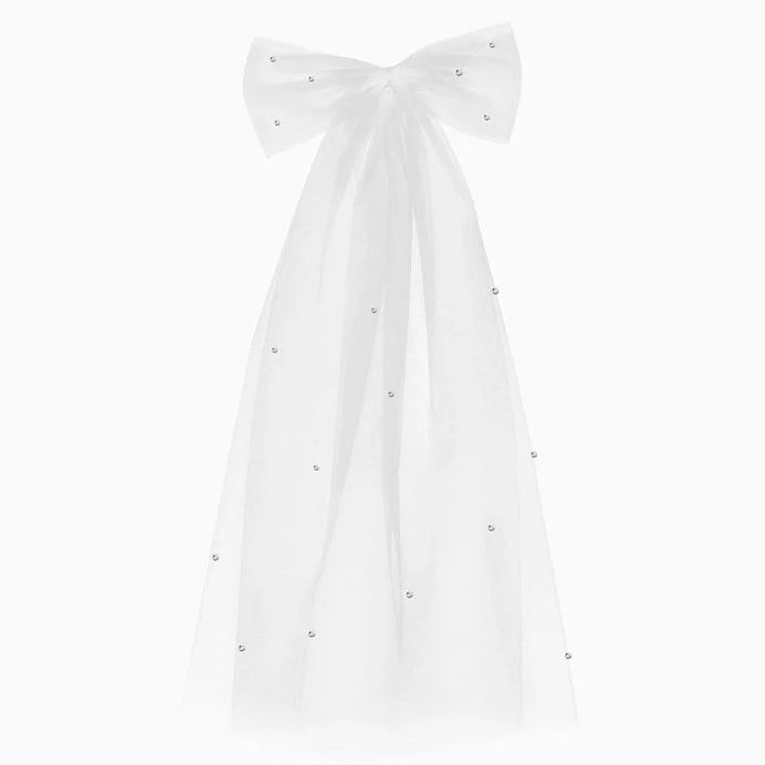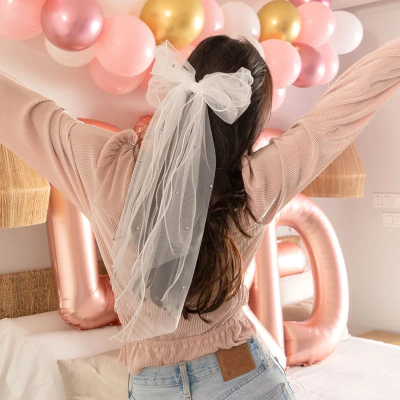 Ideal lazo de tul en color blanco con detalle de perlas. Perfecto para una despedida de soltera.