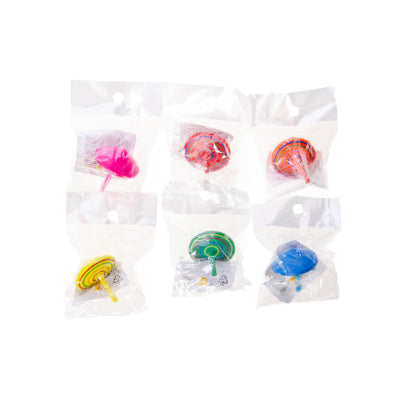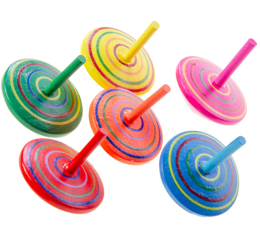 Un trompo de madera, es el juguete de toda la vida. Estos son de colores variados y pintados a mano. Están envasados de forma individual. Color aleatorio.