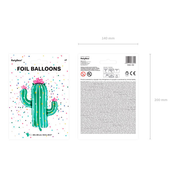 This cactus-shaped Mylar balloon is perfect for welcoming your friends to your summer party. You can inflate it with Helium or with air. It can float in the room, hang from the ceiling or attached to a wall... the effect is total!