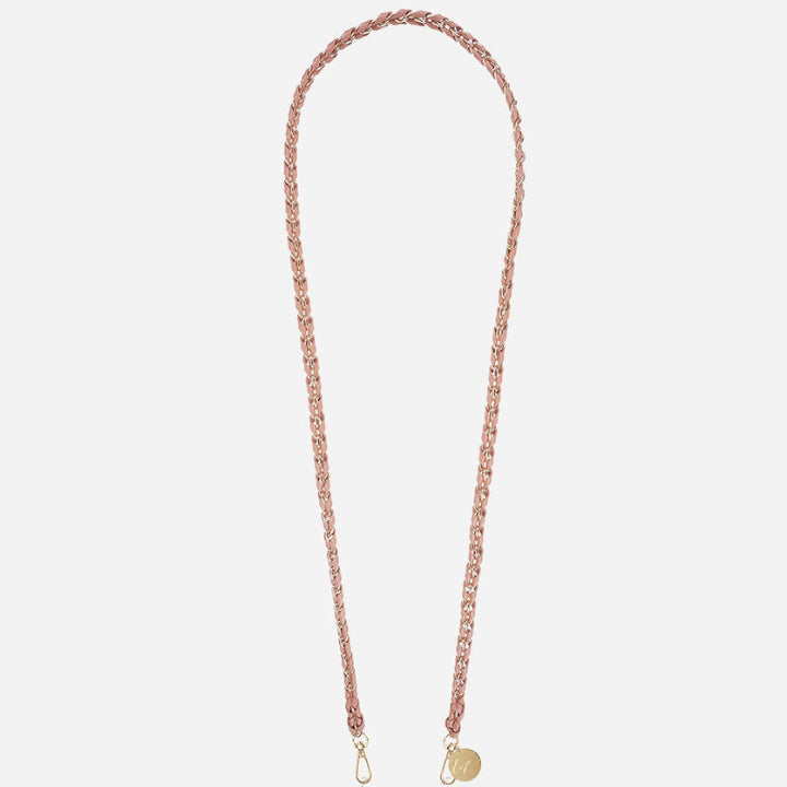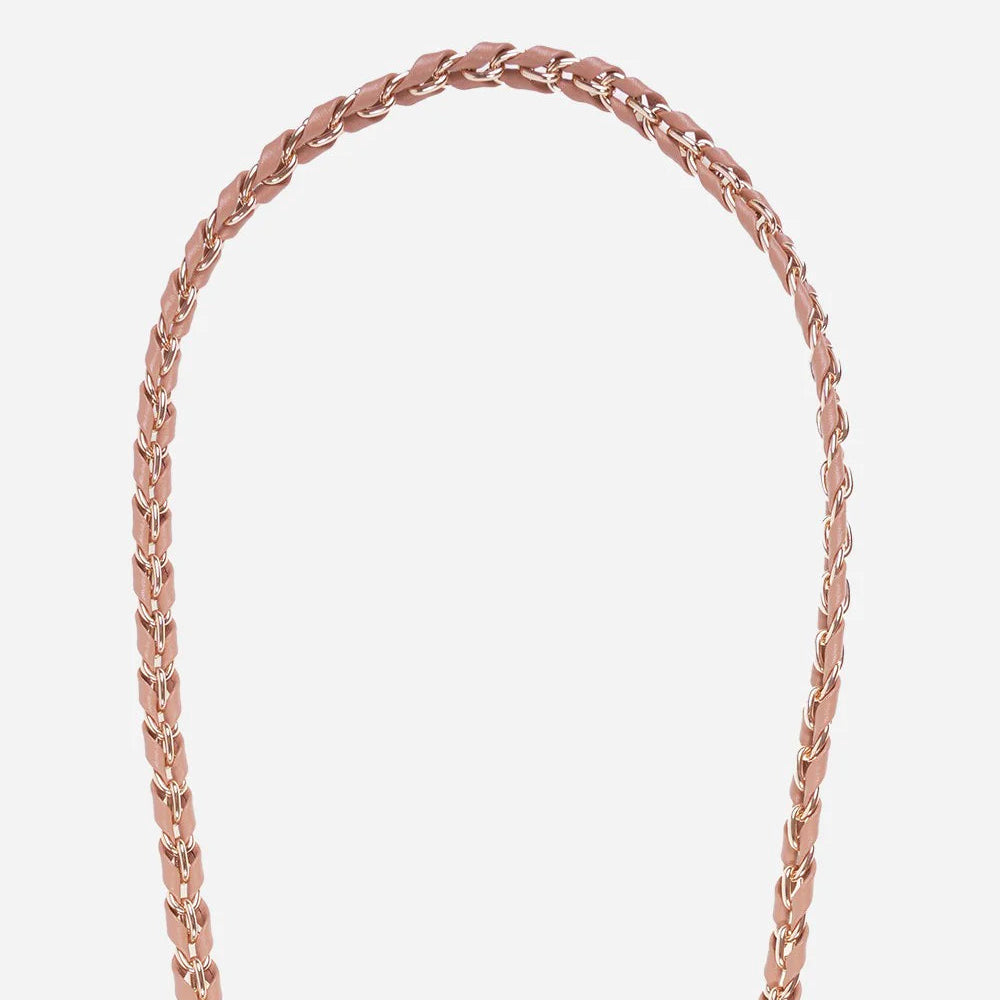 Nuestra cadena para teléfono Lou juega con el contraste entre el acero y el denim trenzado. Un diseño crudo y texturizado que le da al teléfono un toque urbano y relajado.