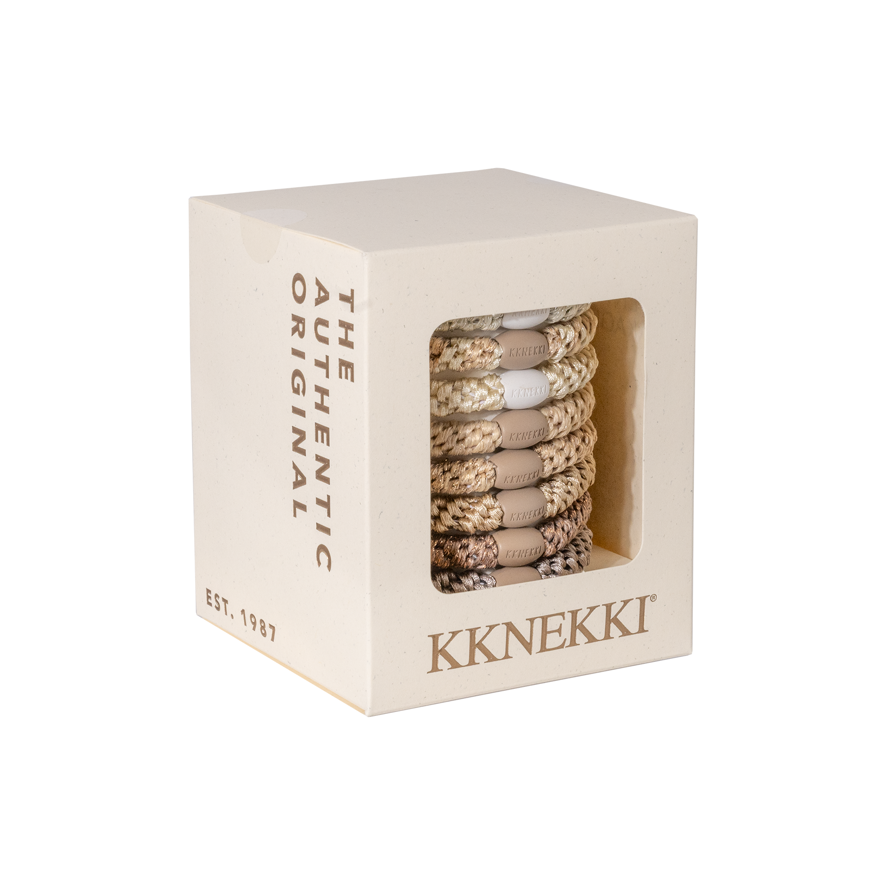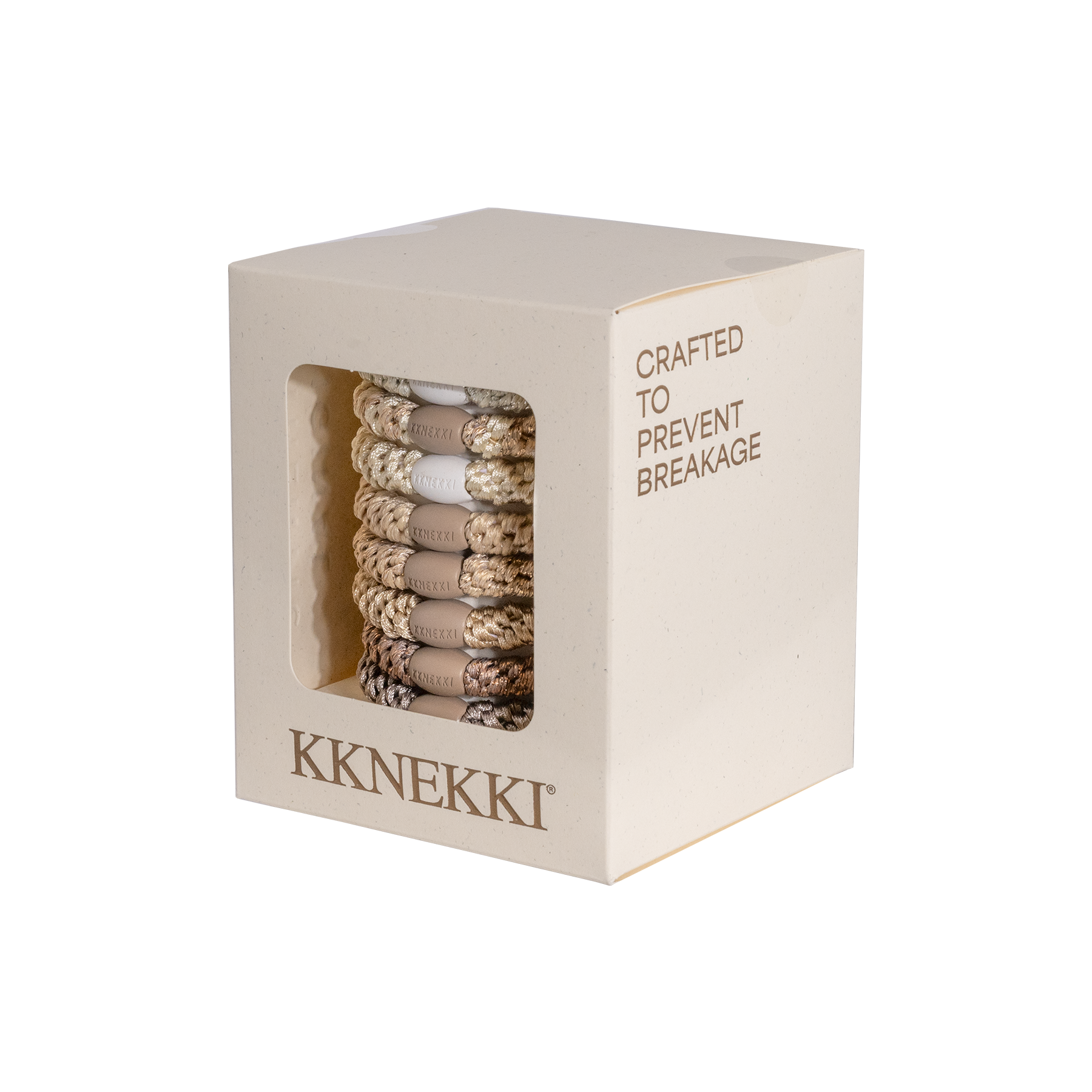 Nos complace revelar el exclusivo pack de 8 Kknekki, una propuesta de regalo premium que combina diseño y calidad. Cada caja ha sido cuidadosamente seleccionada para destacar, incluyendo 8 de nuestras icónicas gomas para el pelo, reconocidas por su estilo y calidad inigualable. Con este concepto listo para regalar, sorprender con KKNEKKI se convierte en una experiencia única.