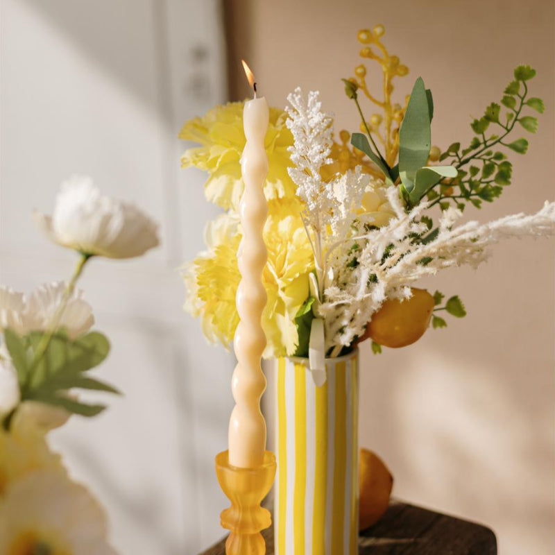Adicione um toque de estilo e cor às suas celebrações com o nosso elegante conjunto de velas torcidas em marfim. Este conjunto de velas destaca-se pelo seu design em espiral, que chama a atenção e confere um toque moderno e distinto a qualquer evento. Com um tom marfim vibrante, estas velas são o complemento perfeito para decorar mesas ou criar uma atmosfera acolhedora e acolhedora nos seus encontros. O seu acabamento de alta qualidade garante uma queima uniforme, ideal para iluminar aqueles momentos especiais. Transforme a sua festa com este elegante conjunto de velas!